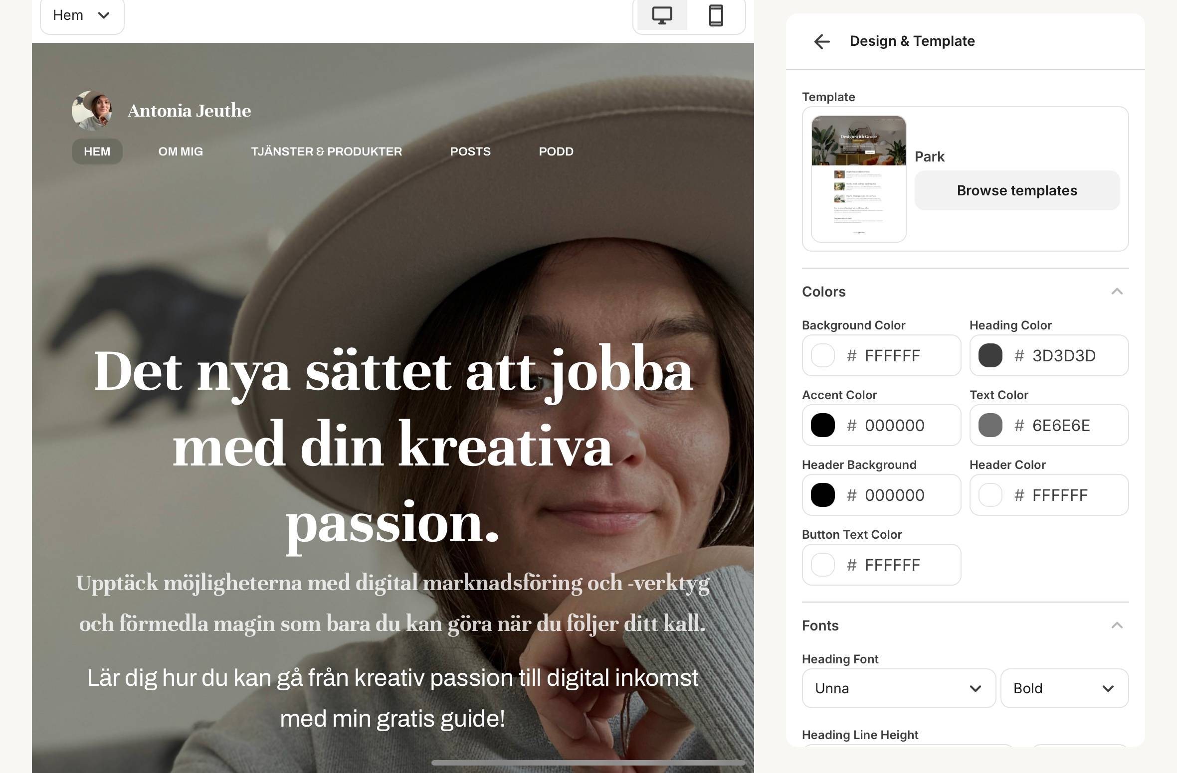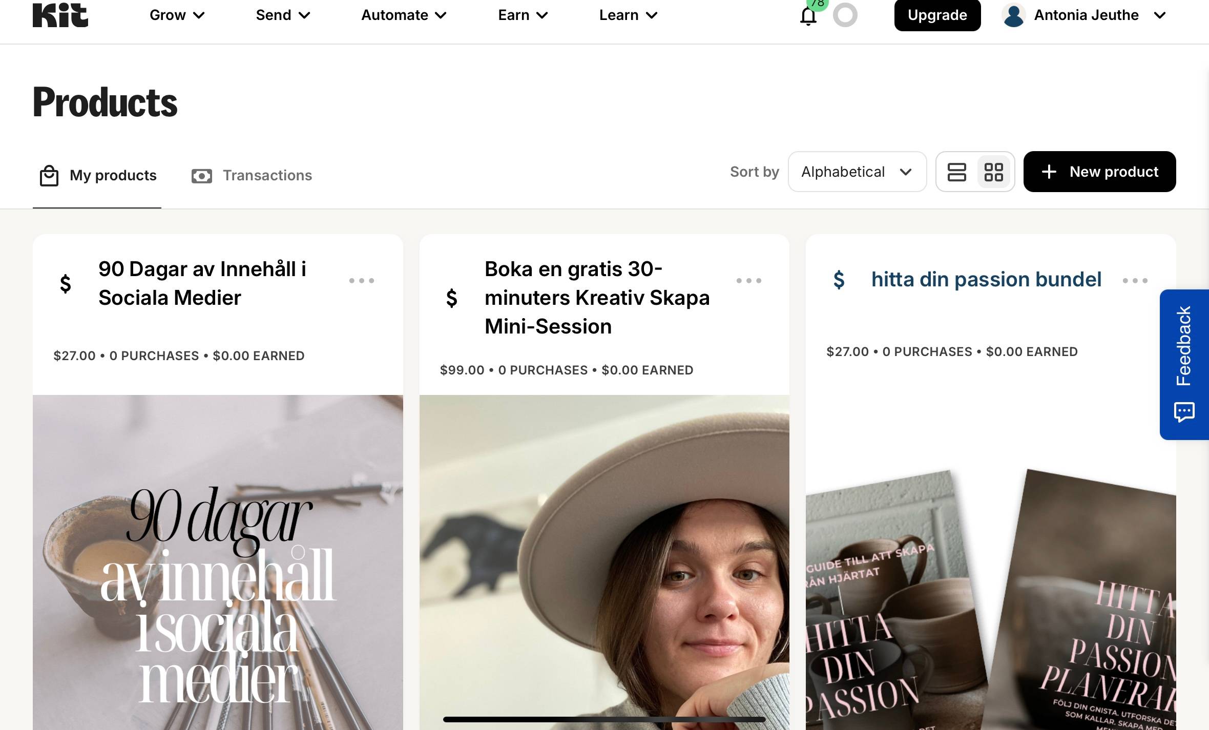 2. Skapa din egen hemsida (Creator Profile) Här tycker jag att Kit sticker ut. Du kan nämligen skapa en helt egen hemsida, utan teknisk kunskap. Din Creator Profile blir som en hubb där dina följare hittar allt: vem du är, dina produkter, dina inlägg och länkar till dina kanaler. Du kan dessutom välja bland färdiga mallar och anpassa färger, typsnitt och design. 3. Sälj digitala produkter och tjänster Vill du erbjuda en digital guide, en workshop eller kanske en planerare? Då kan du sälja direkt genom Kit. Du slipper krångliga tekniska lösningar och kan lägga upp produkter direkt i din Creator Profile. Det här gör att du kan börja smått – kanske med en PDF-guide – och sedan bygga vidare med fler digitala produkter. När du klickar på Products kan du skapa nya digitala erbjudanden på bara några minuter. Du väljer själv om det ska vara en e-bok, en guide, en kurs eller till och med en coachingsession. Så här ser det ut: Jag älskar att det är så smidigt – på samma plats kan jag erbjuda både digitala produkter och tjänster, och på det sättet bygga flera inkomstben kopplat till min kreativa passion. Min egen Creator Profile Jag använder själv Kit.com för att samla allt på ett ställe. Här kan mina följare läsa om mig, hitta mina tjänster och produkter, samt klicka vidare till min blogg och podd. Jag gillar framför allt att det är enkelt, visuellt snyggt och att jag kan komma igång gratis. Och jag tror att det är det vi behöver, så vi kan lägga mindre tid på tekniskt strul och mer tid på vårat kreativa utövande. Jag hoppas att den här genomgången gav dig en tydligare bild av hur du kan använda Kit.com för att bygga din kreativa närvaro. För mig har det här verktyget gjort det möjligt att ta steget från passion till digital inkomst – och jag är övertygad om att det kan hjälpa dig också. Är du nyfiken på att testa själv? Du kan registrera ett konto gratis via min länk till Kit.com. Jag har valt att samarbeta med Kit eftersom jag själv använder och tycker att det är ett fantastiskt verktyg för kreatörer. Länken är en så kallad affiliate-länk, vilket betyder att jag får en liten provision om du registrerar dig via den – utan extra kostnad för dig. Vad kostar det att använda Kit? En vanlig fråga jag får är: ”Men kostar det inte mycket att använda sådana här verktyg?” Det fina med Kit är att du kan börja helt gratis. Newsletter-planen ($0/månad) ger dig upp till 10 000 prenumeranter – och redan där kan du: • Skapa din hemsida (Creator Profile) • Sälja digitala produkter och tjänster • Skicka nyhetsbrev • Bygga landningssidor Det betyder att du kan komma igång och testa utan att behöva investera en krona. De betalda planerna (från $25/månad) ger dig fler avancerade funktioner som automatiseringar och obegränsade e-postflöden – men det är inget du behöver för att starta. Gratisplanen räcker gott och väl för att bygga din första digitala närvaro och sälja dina första produkter. |